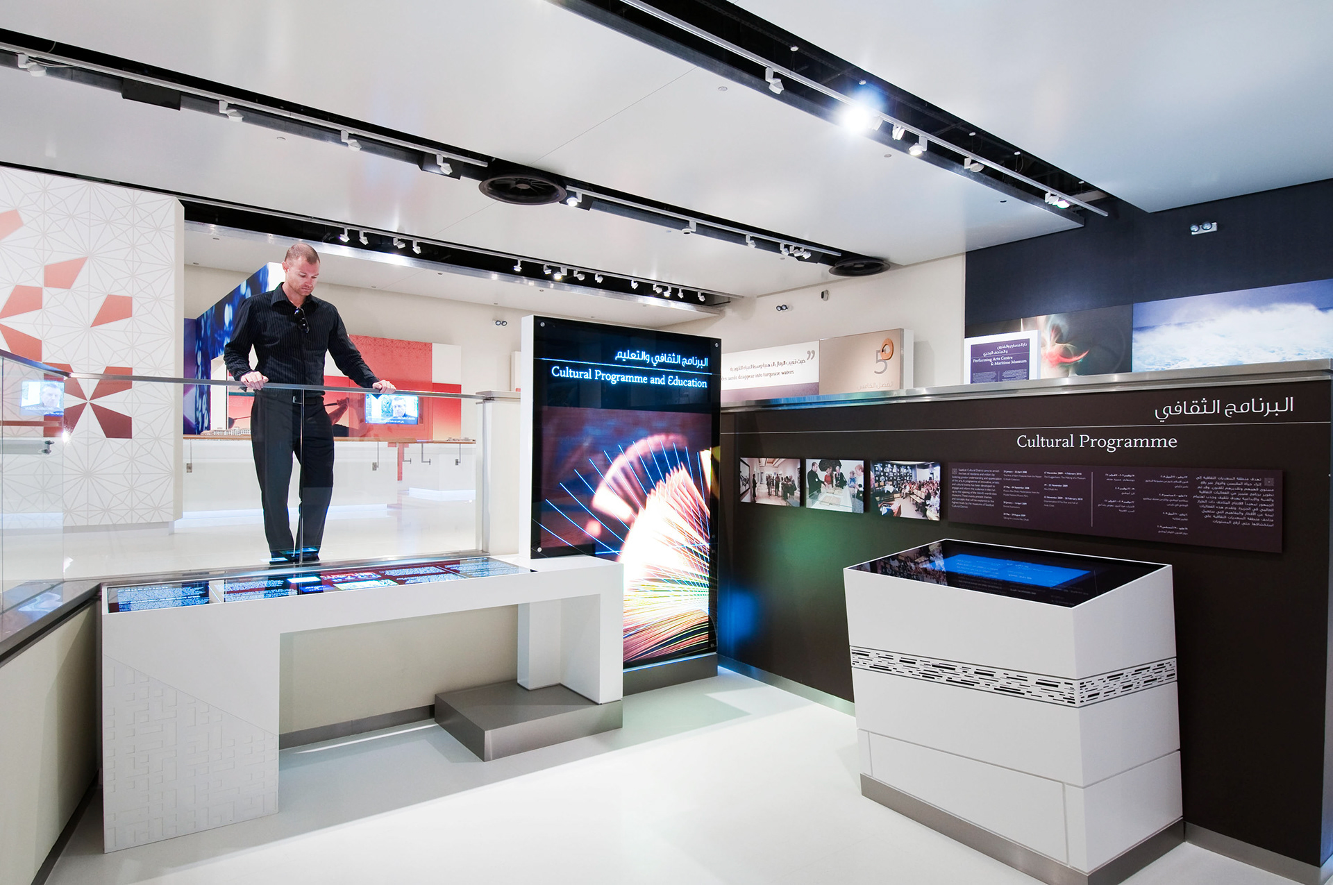 The first permanent exhibition to open at Manarat Al Saadiyat was designed around the stories of nine chapters that articulate the different facets of the island’s history and ambitious future plans. Visitors are introduced to the island in an immersive theatre with a large panoramic screen that envelops the audience in an evocative film which explores the unique aspect of this amazing destination. At the heart of island, lies the Cultural District with its prestigious mix of world renowned museums and attractions.
